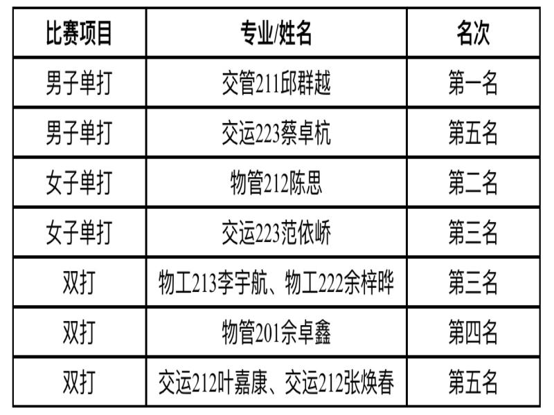 本次比赛为乒乓球爱好者们提供了一个展现自我和相互交流的平台,为观众贡献了一场又一场精彩的体育盛宴,使同学们更深刻地感受体育竞技的魅力,用体育精神响应时代的号召,文体双开花,展现了港航学子积极向上、努力拼搏、不断进取的新时代老员工的精神风貌。