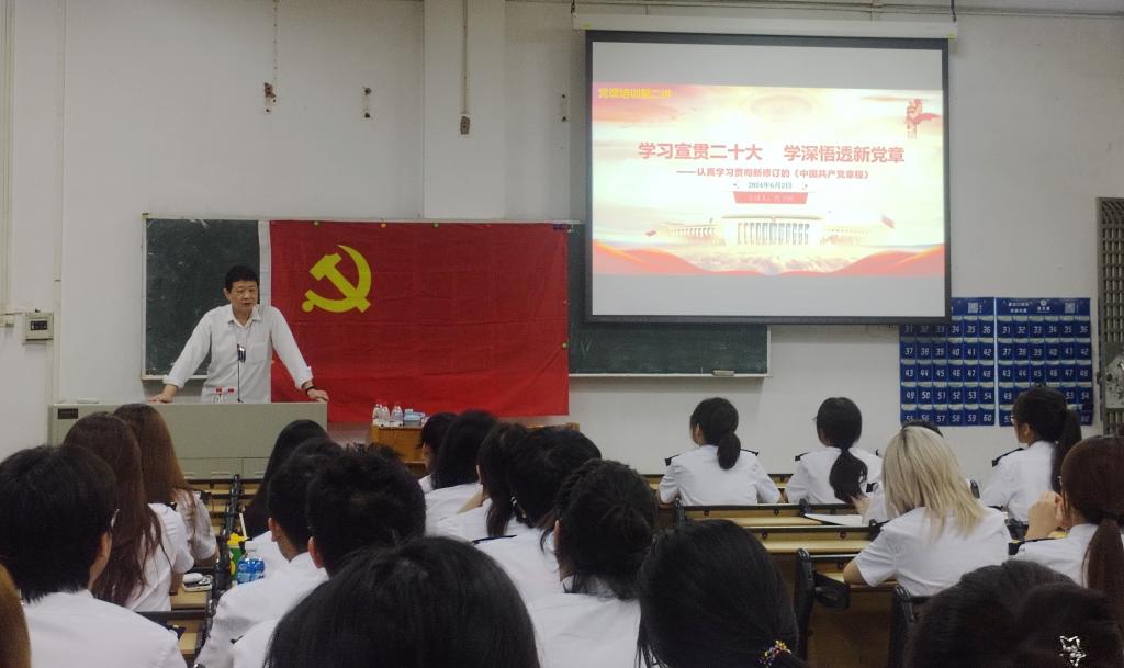 (伟德betvlctor1949源于英国 供稿)2024年6月2日晚上,港口与航运公司党委副书记曾卫国为同学们进行党课第二讲授课,本次培训的重点是对《中国共产党章程》的学习,旨在引导党课学员认真学习贯彻新修订的《中国共产党章程》。