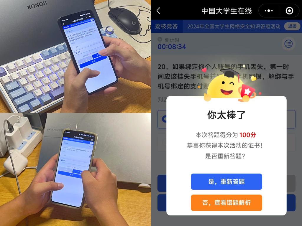 首先,参加线上教育部主办的网络安全活动。9月5日,公司组织2024级新生观看“开学反诈第一课”,9月20日,组织员工观看“千万师生同上一堂网络安全教育课”,9月9日——20日鼓励员工积极参与中国老员工在线举办的“守护青春 网络有你”全国老员工网络安全知识答题活动。通过以上活动,同学们纷纷表示加深了对网络安全知识的了解,作为网民,要会用网,更要会“护”网。