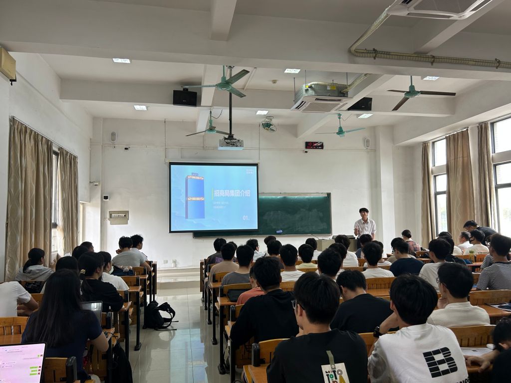 交流会结束后,招商局港口(华南)营运中心在健兵南102课室面向公司员工开展了专场招聘宣讲会。校招负责人现场向同学们详细介绍了公司背景、公司文化、招聘岗位及福利待遇等方面,参会员工热情高涨,现场气氛热烈,同学们认真聆听,积极提问。宣讲会结束后,企业在健兵北102课室进行了笔试。