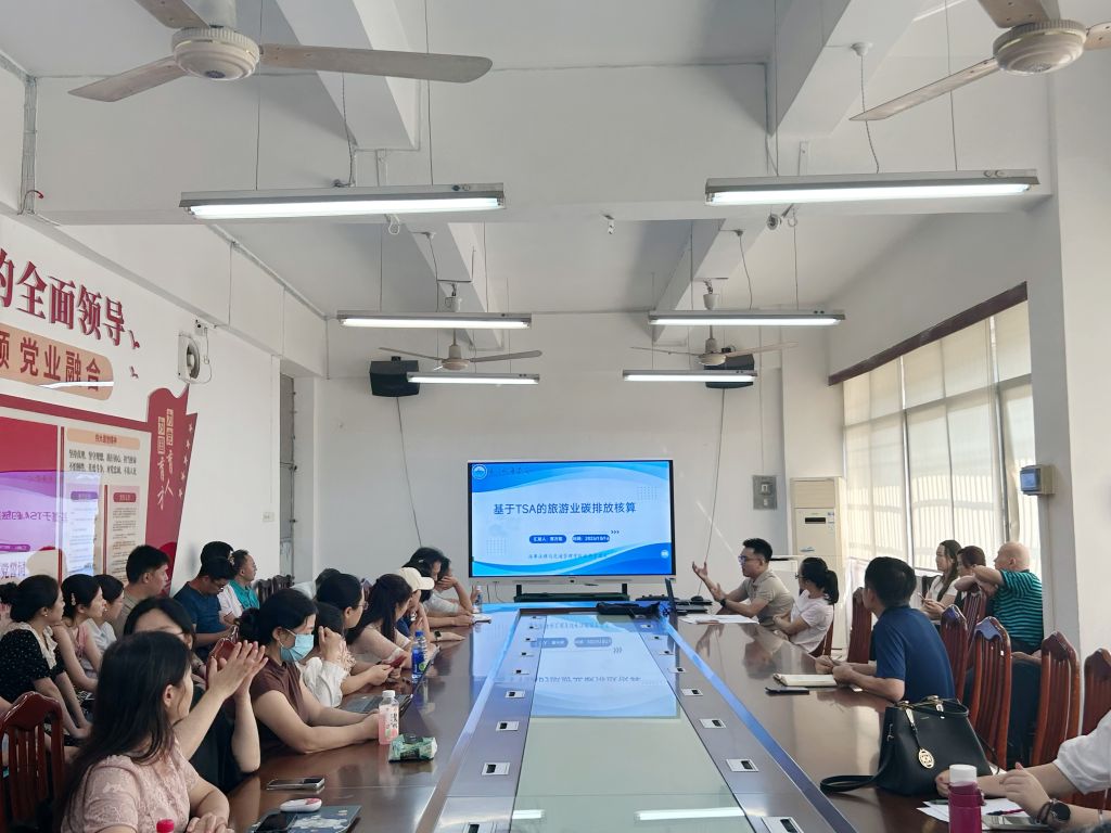 覃方铭在讲座中系统分析了“双碳”目标约束下如何基于旅游卫星账户(TSA)实现旅游业碳排放核算目标,分享了最新相关研究进展。他指出,当前统计数据的局限性与核算方法的差异性严重影响了旅游业碳排放核算的精确性,针对这一学术难题,研究从旅游消费剥离视角出发,提出一套基于TSA的旅游业碳排放核算方法体系,并以广东省为例展开实证分析,为政府制定差异化减排政策提供量化依据。