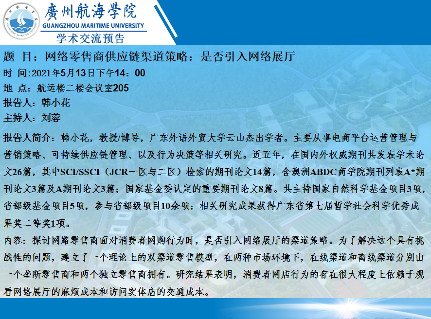 上一条:郭秀娟高级工程师举行讲座预告:广州港的历史、现状与未来 下一条:王玮教授学术讲座预告:工业互联网引发的颠覆式管理变革