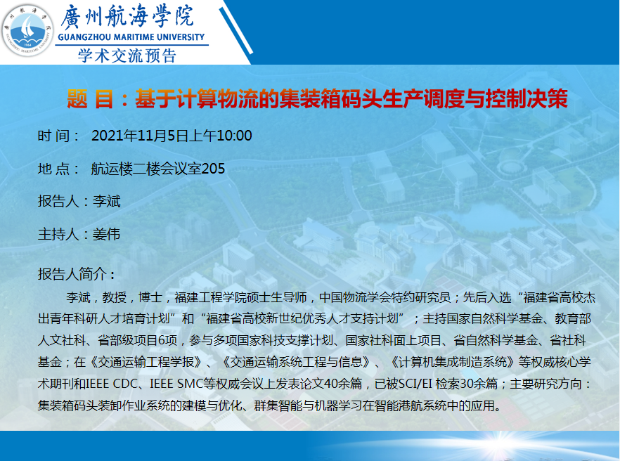 上一条:周四学术讲座预告:海南自贸港国际船舶登记制度研究 下一条:学术讲座预告:关于广州港南沙四期自动化码头建设的实践与启示