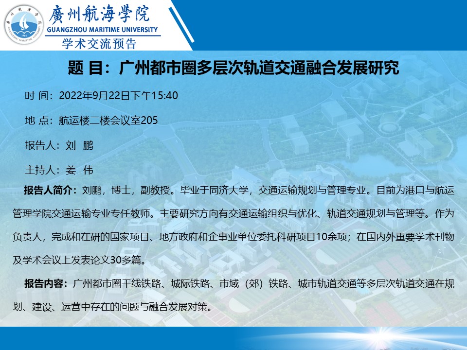 上一条:廖诺教授学术讲座预告:如何管理你的研究工作 下一条:学术讲座预告:关于广州港南沙四期自动化码头建设的实践与启示