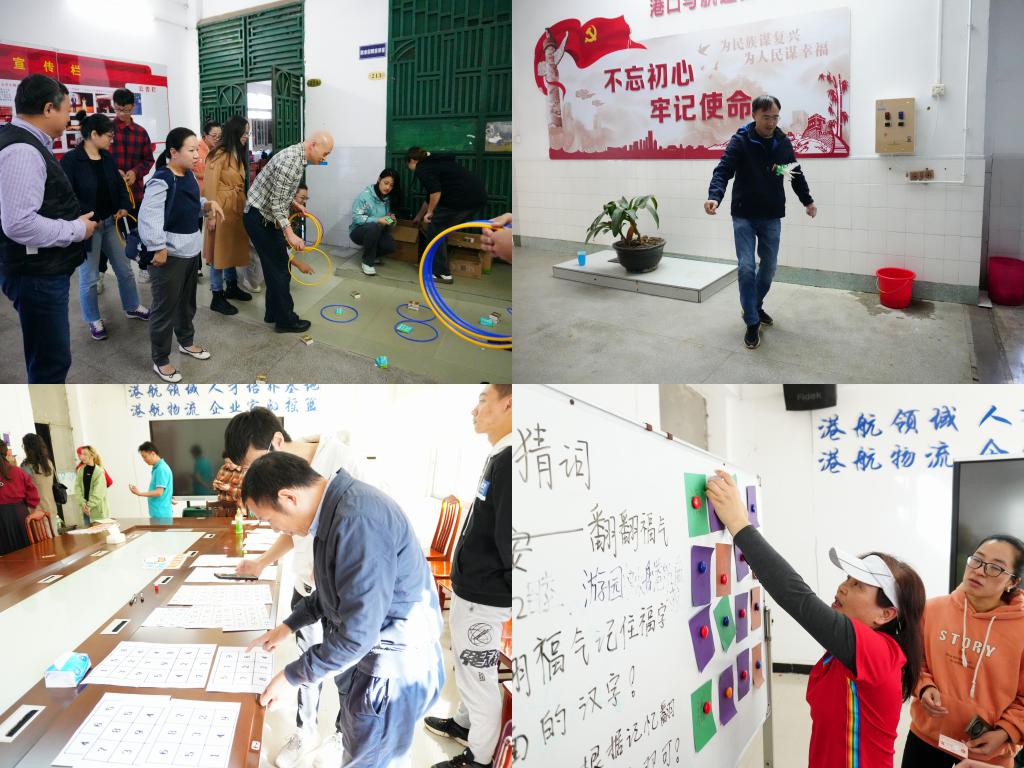 毽球是中国民族传统体育宝库中一颗璀璨的明珠,它在花毽的趣味性、观赏性、健身性的基础上,增加了对抗性,是一种隔网相争的体育项目。在欢乐猜词环节,老师们要通过翻词牌记忆词汇,争取用最短的时间完成一个四字词语:国泰民安、幸福美满是对祖国大家和个人小家的美好祝愿,港航威武、快乐游园是对公司的深厚感情。舒尔特方格展现出老师们强大的记忆能力与反应能力,其中用时最短的老师用16秒完成了挑战,引来了同行人的啧啧称赞。在幸福套圈区域里,热心老师在传授套圈技巧,“要蹲低一点”、“不需要太多力量,轻轻扔出去即可”,是提醒,是叮咛,是“进了港航门,就是一家人”的感情。大家各显神通,精准出手,收获礼品更收获快乐。