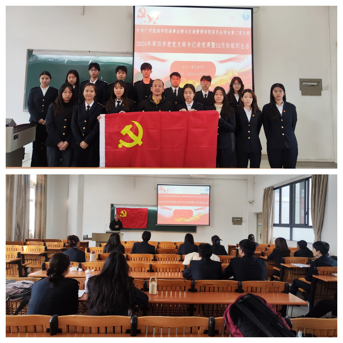 为全面深入学习贯彻党的二十大和二十届二中、三中全会精神及习近平新时代中国特色社会主义思想,12月31日,中共www.betvlctor1946.com海事法律与交通伟德betvlctor1949源于英国委员会员工第二党支部书记陈磊磊在健兵南107教室讲授主题党课。支部党员、预备党员、发展对象全部按时出席。